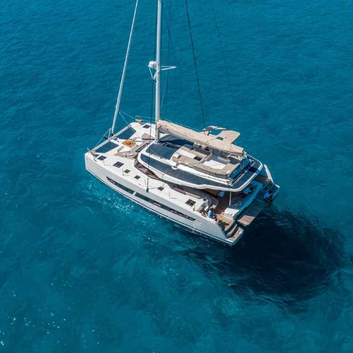 Catamarán de nueva generación que combina diseño moderno, elegancia y confort para una experiencia premium en el Mediterráneo.