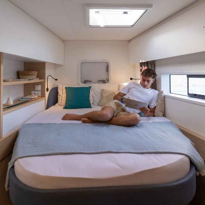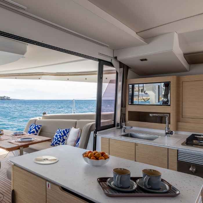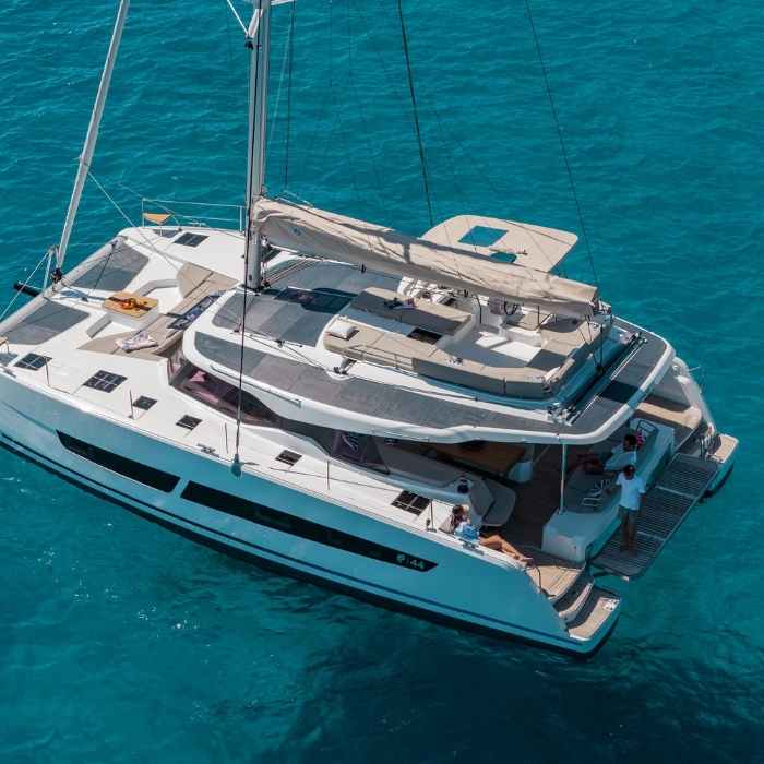l Fountaine Pajot NEW 44 (2025) es un catamarán de lujo diseñado para quienes buscan una experiencia de navegación moderna, elegante y confortable en el Mediterráneo.