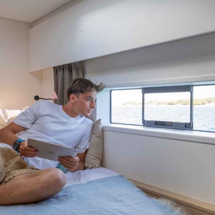Su diseño de nueva generación combina espacios amplios, líneas contemporáneas y un equipamiento pensado para disfrutar del mar con total libertad, ya sea fondeados en calas exclusivas o navegando entre islas.